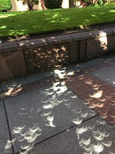 Walking outside, there was a buzz of excitement as people stopped every few feet to stare back up into the sky. The shadows themselves grew longer; the light cast between the beaches changed shape, looking for all the world like slivers of the holes you punch out of paper.