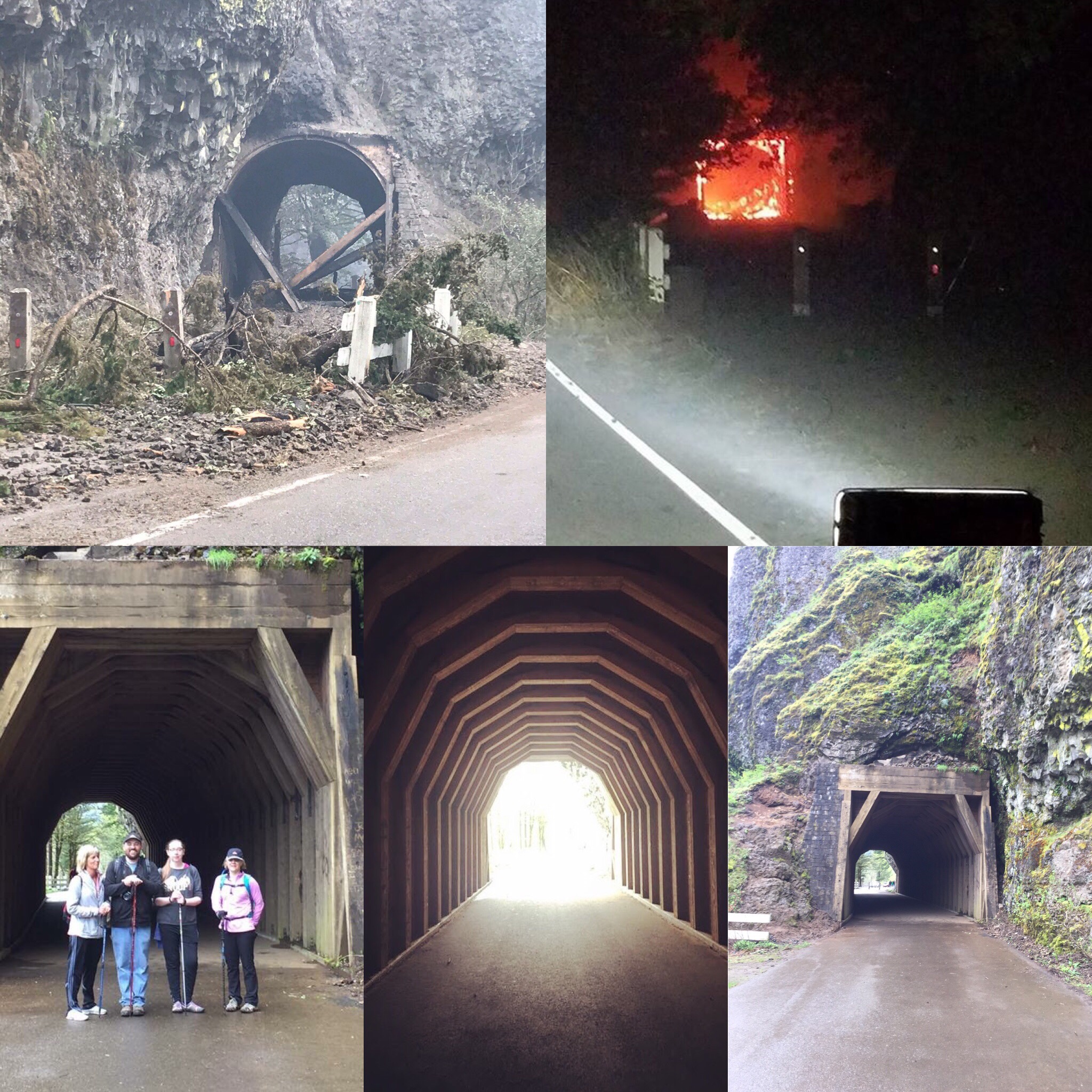 These are a few pictures of Oneonta Tunnel, a historic tunnel that was originally built for vehicle use back in 1914. It had since been reopened for pedestrian use only and is along a hike I did with friends a few months ago. The bottom photos are what it looked like that day I was there. The upper right photo is the night that it burned. The upper left is the charred remains. It’s gone, and so are the beautiful forests that surrounded it.